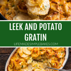 This leek and potato gratin is a dish that combines the mild, slightly sweet flavor of leeks, with the starchy, earthy flavor of potatoes. All combined with a cream sauce and topped with two different cheese flavor profiles to create an exquisite side dish!