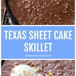 Rich, moist chocolate sheet cake topped with chocolate frosting and toasted pecans. Made in a cast iron skillet in just a little over 30 minutes!!